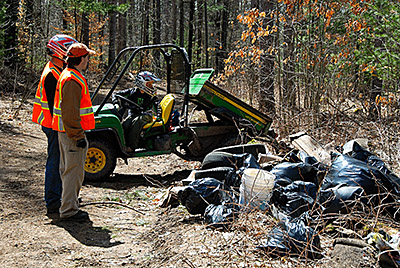 We maintain trails throughout the year as the need arises and undertake forest cleanup in the spring having removed many tonnes of garbage